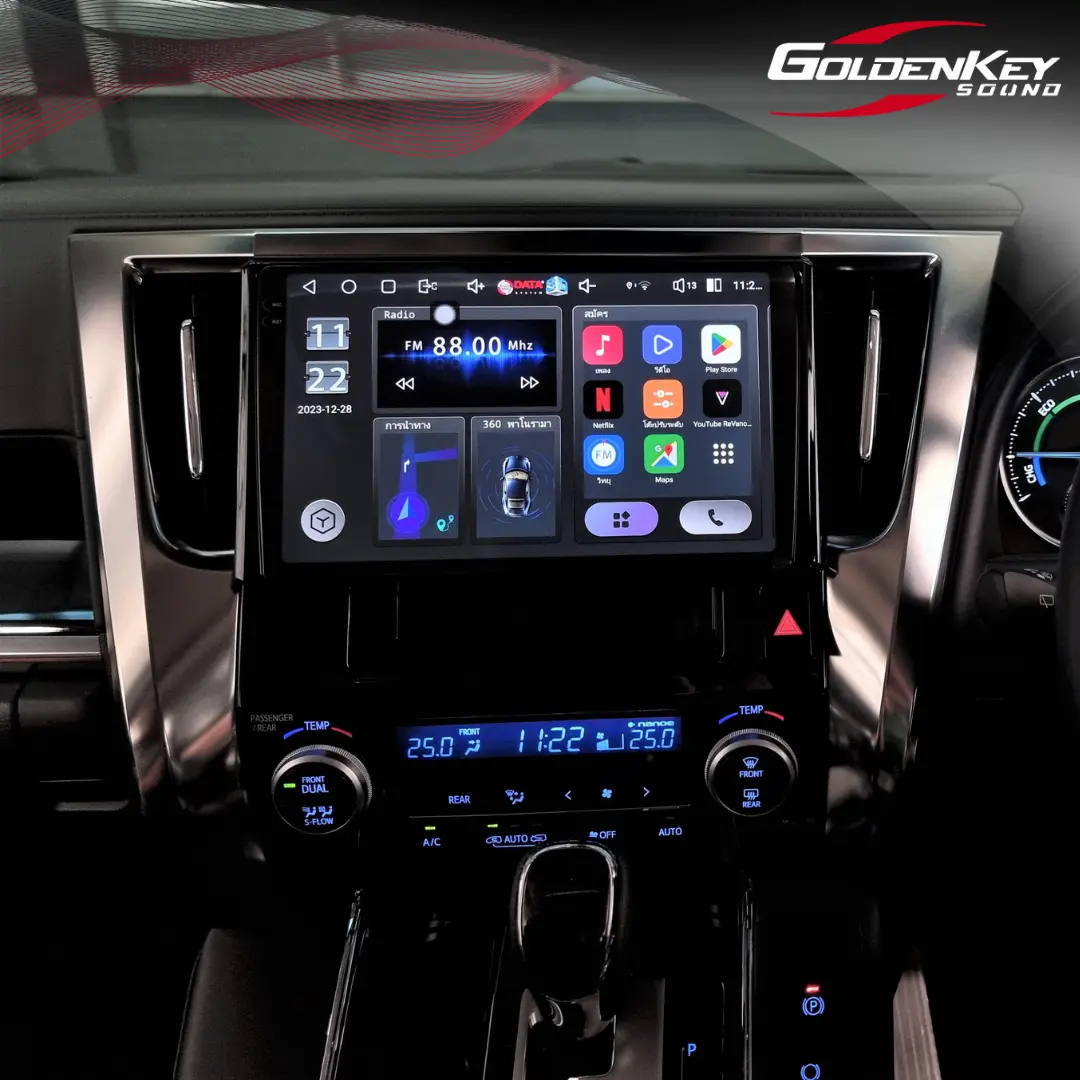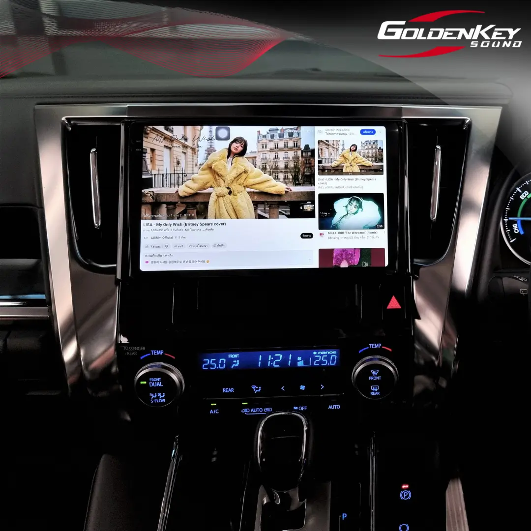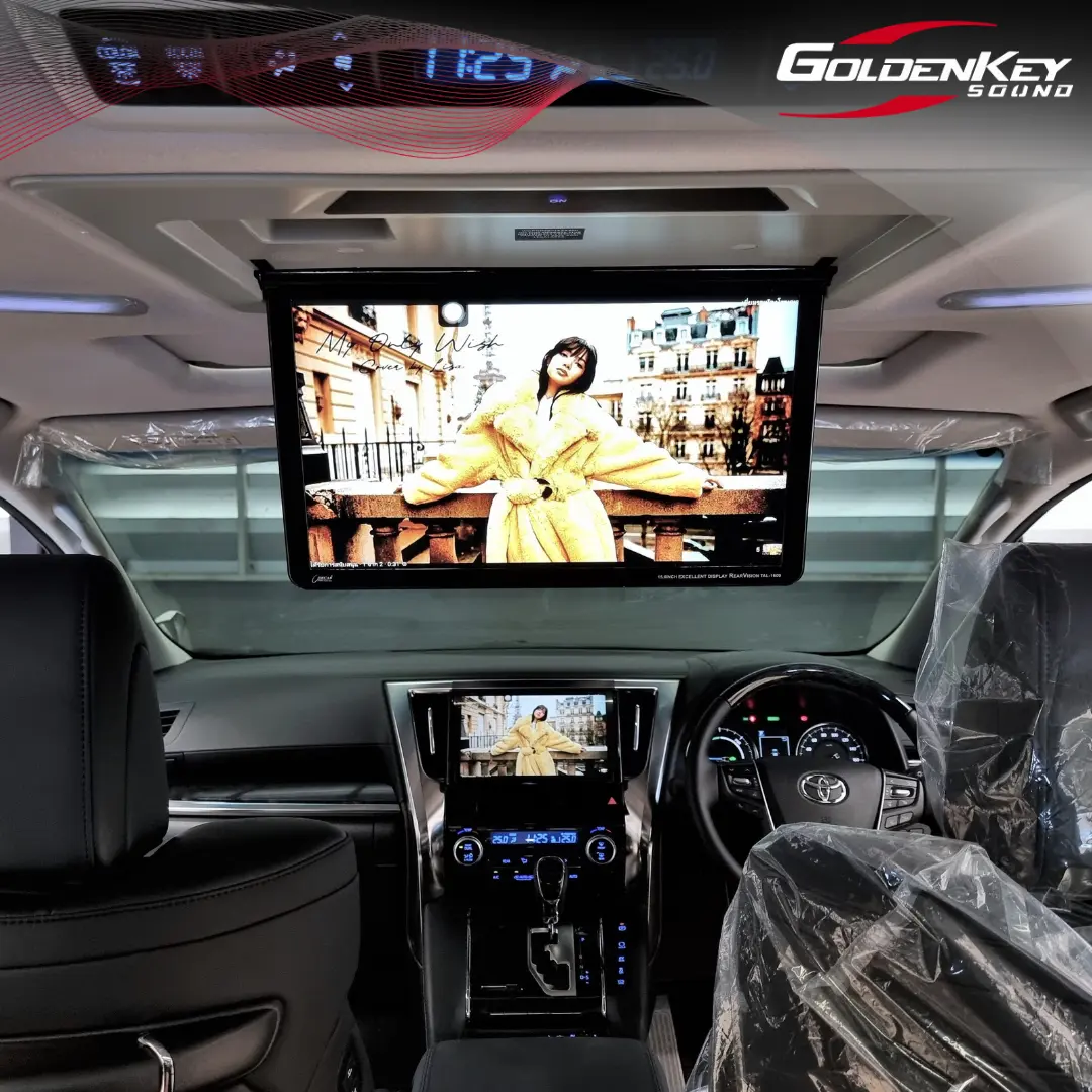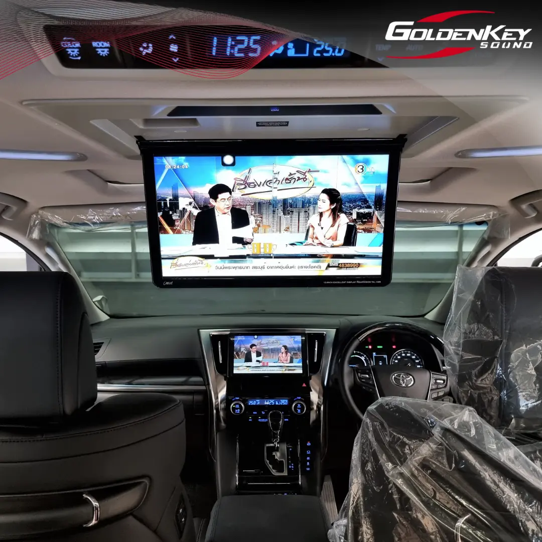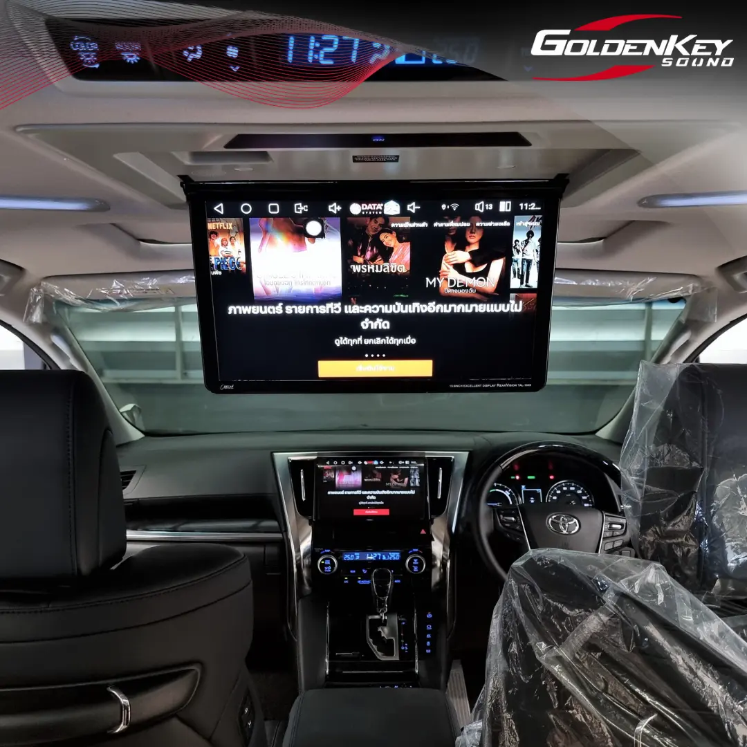 Goldenkey Sound งานติดตั้งนอกสถานที่จัดเต็มระบบ เปลี่ยนจอหน้า Android รุ่นท็อปสุด พร้อมจอเพดาน 15 นิ้วแบบฝังเรียบออกแบบมาตรงรุ่นโดยเฉพาะ ดูเรียบร้อยสวยงาม ไม่ปูดนูนเหมือนจอแถมทั่วไป การใช้งานดีกว่าจอเดิมติดรถมากๆ