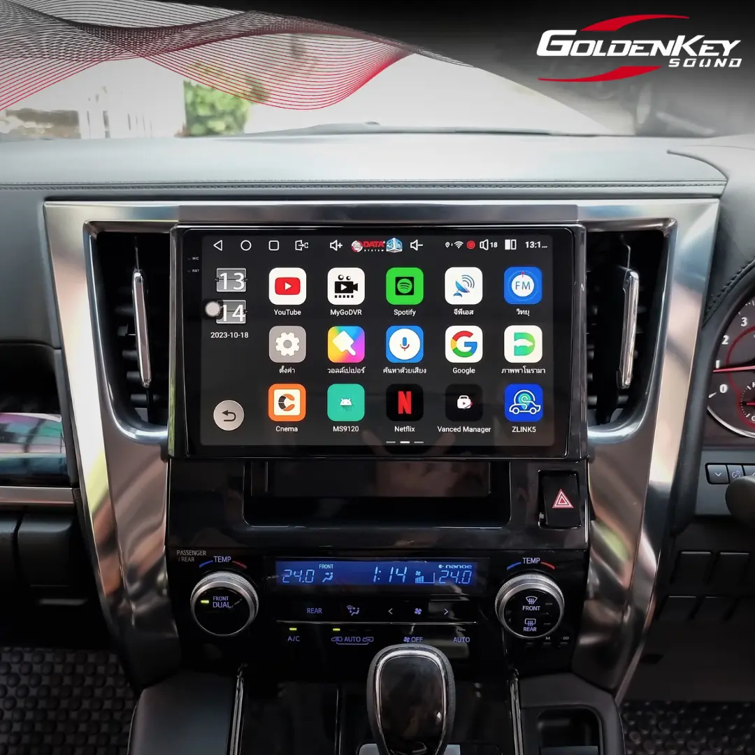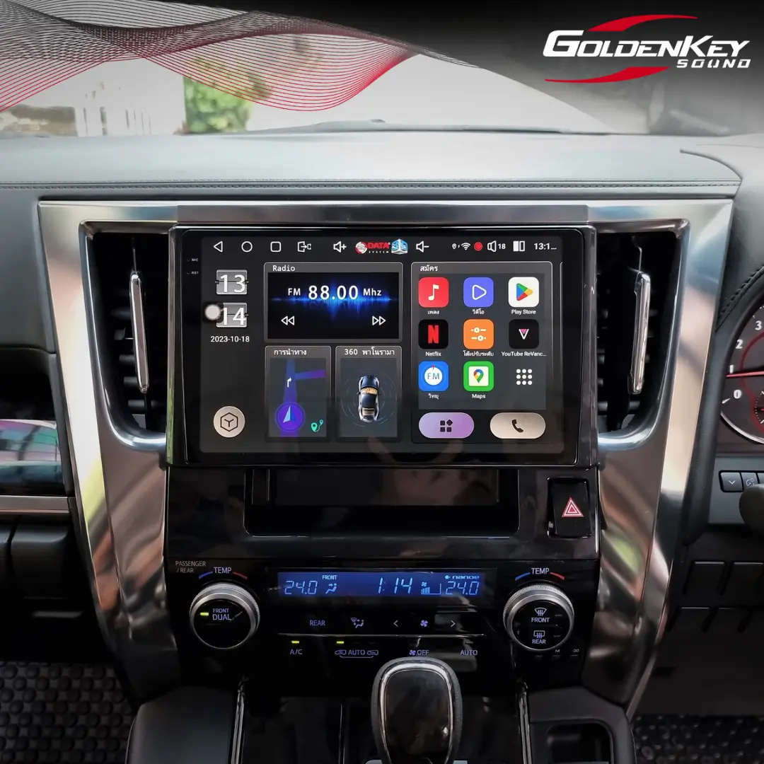 Alphard 2023 ติดตั้งจอหน้าตัวท็อป Android 10” แทนจอเดิมติดรถจากญี่ปุ่น เล่น YouTube, Netflix, Disney และ App อื่นๆได้อีกมากมาย การใช้งานไหลลื่น ไม่มีสะดุด จอภาพ 2K ให้ความคมชัดสูง พร้อมกล้อง 360 องศา Datasystem ที่ออกแบบมาตรงรุ่นรถโดยเฉพาะ กลมกลืนเรียบร้อยสวยงามเหมือนมาจากโรงงาน