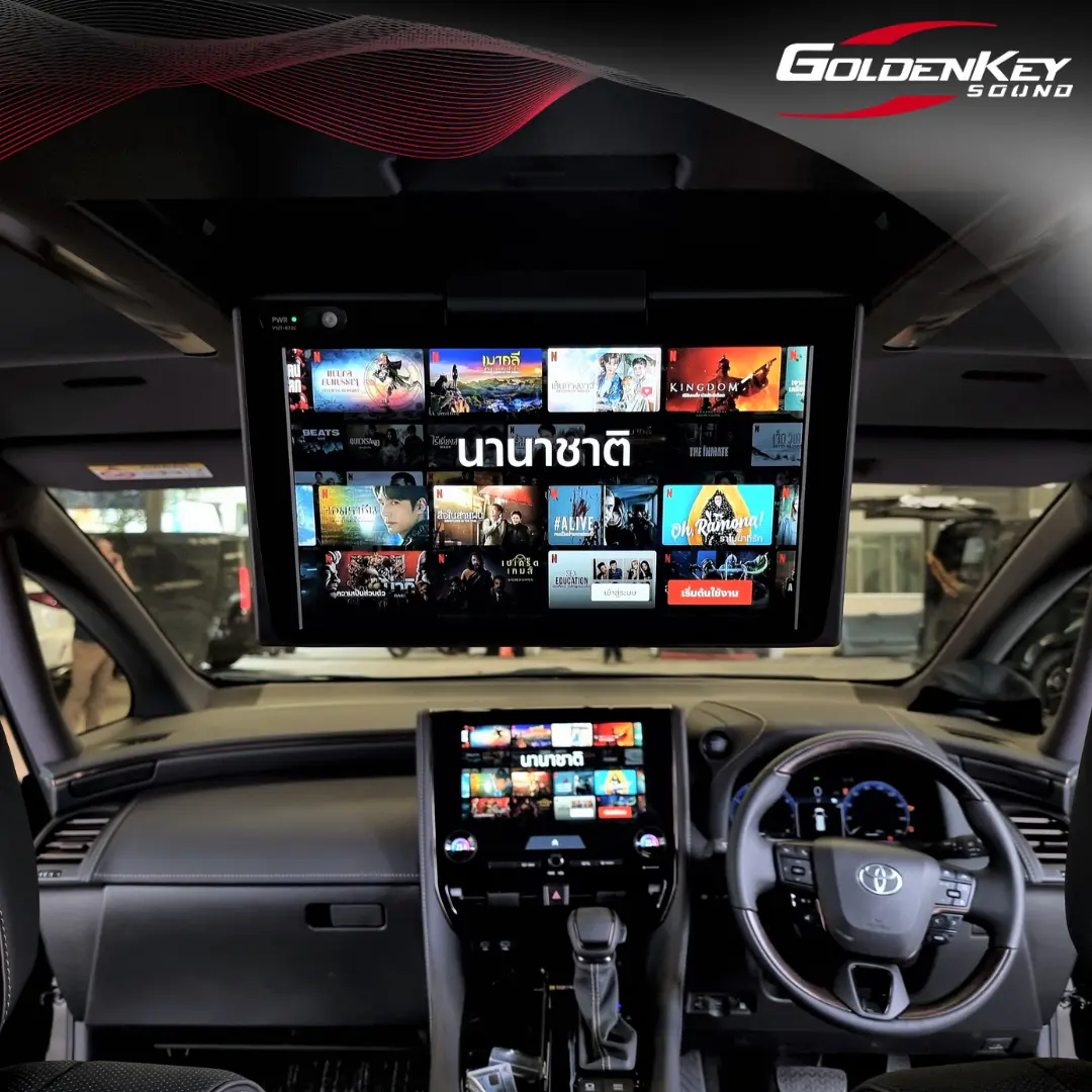 Alphard AV40 คันนี้เป็นรุ่นมีจอหน้าและหลังมาจากญี่ปุ่น ทางร้านติดตั้งเพิ่มกล่อง Android ให้จอเดิมติดรถจากญี่ปุ่นสามารถดู YouTube, Netflix, Disney, Tuner TV และ App อื่นได้ทันที ภาพออกทั้จอหน้าจอเพดาน พร้อมเสริมชุดปลดล็อคจอหน้าให้สามารถดูได้ตลอดเวลาขับขี่
