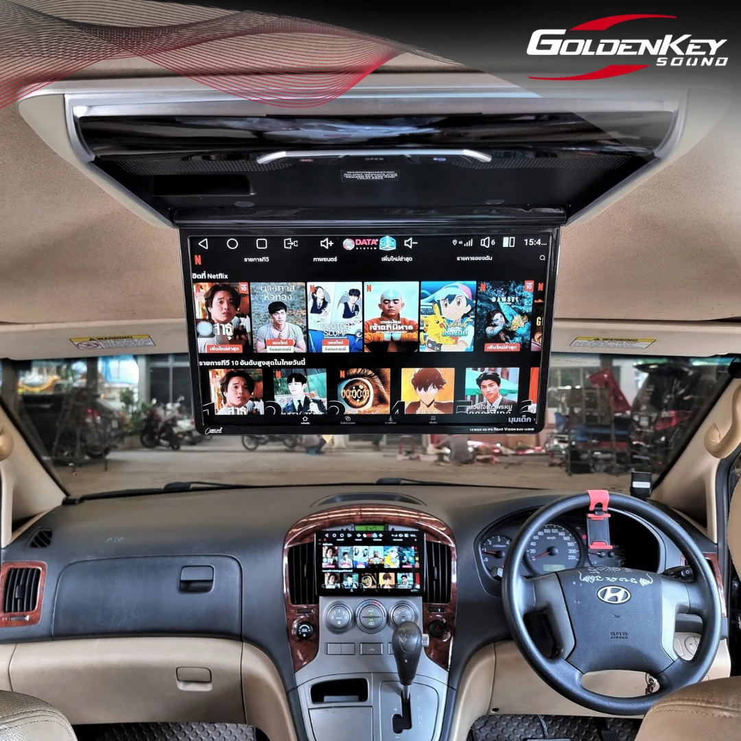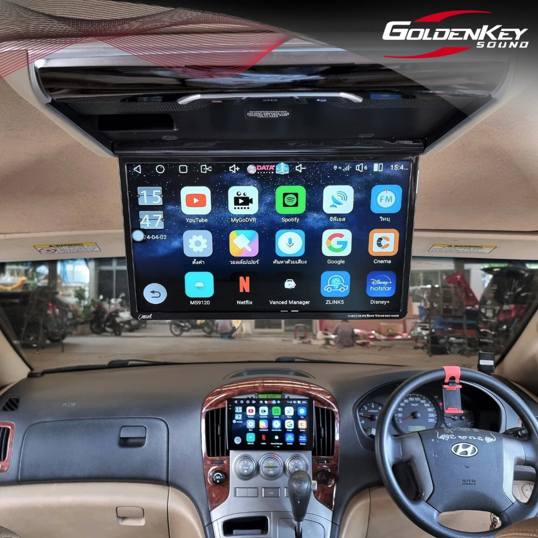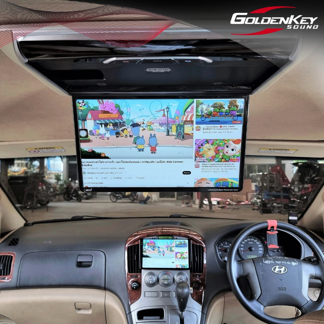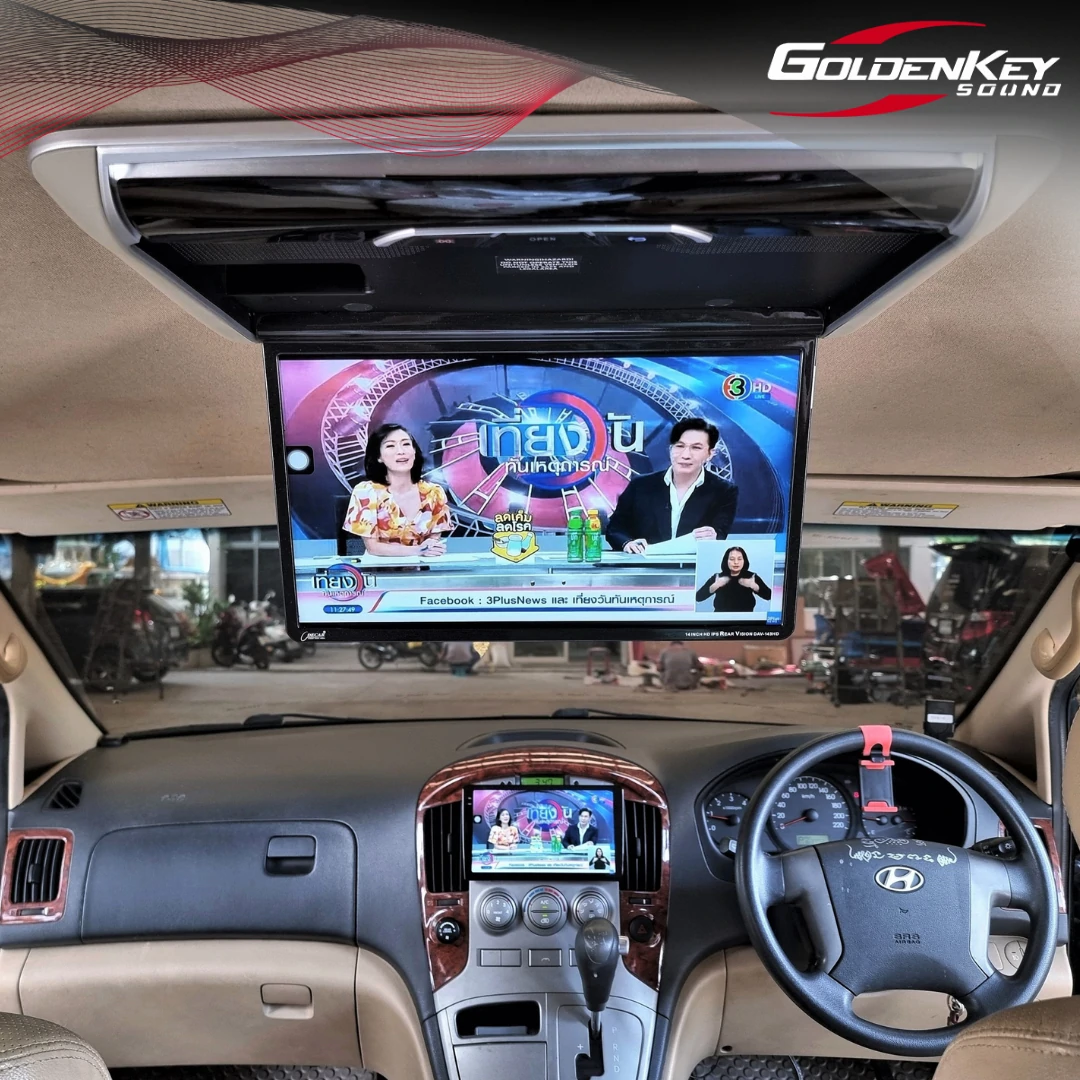 ติดตั้งจอเพดานใหม่ ขนาด 14 นิ้ว เข้ารูปสวยและรับสัญญาณภาพผ่านทาง HDMI จากจอหน้าให้คุณภาพภาพที่ชัดเจนสวยงาม พร้อมติดตั้งกล้องมองหลัง AHD ภาพคมชัดสวยงาม