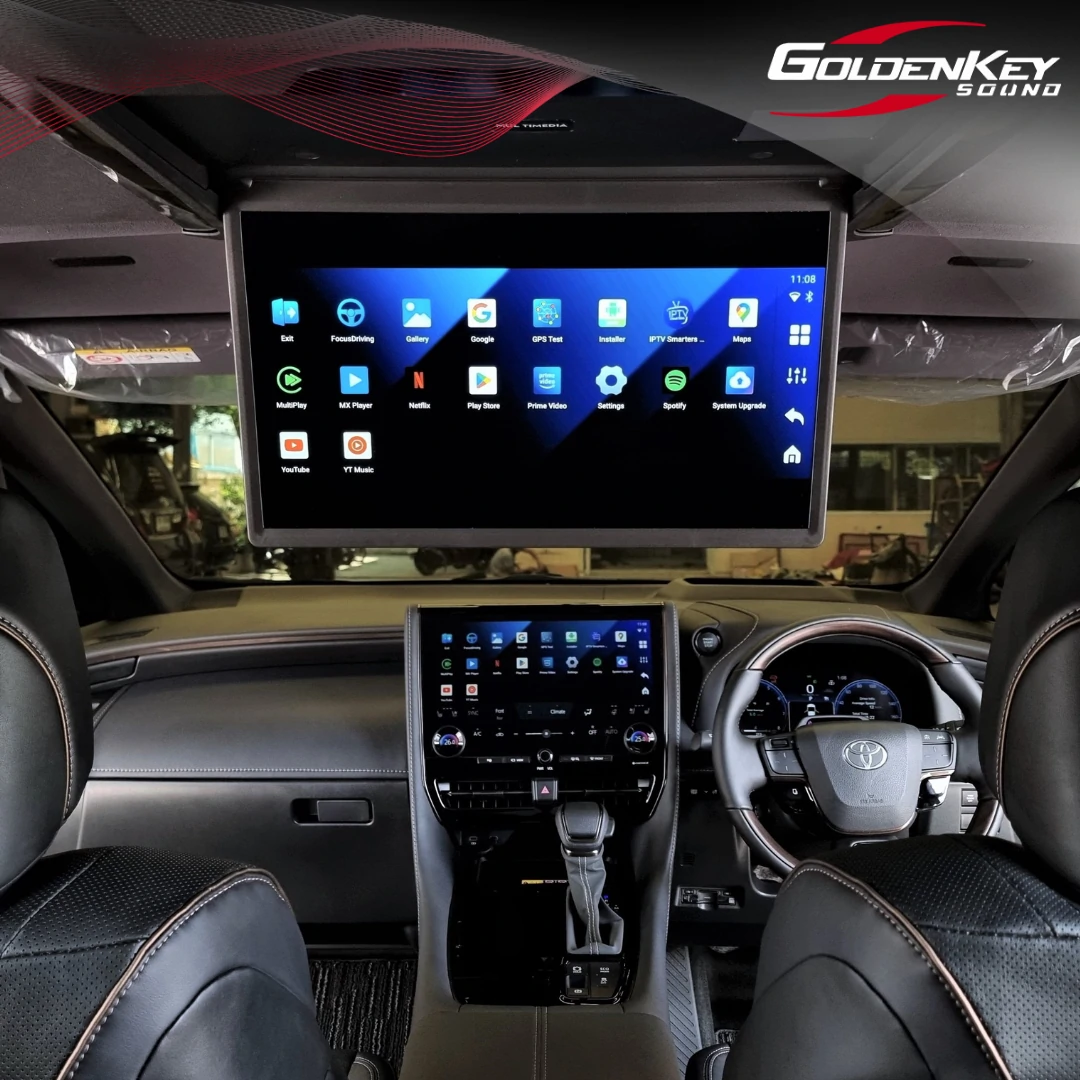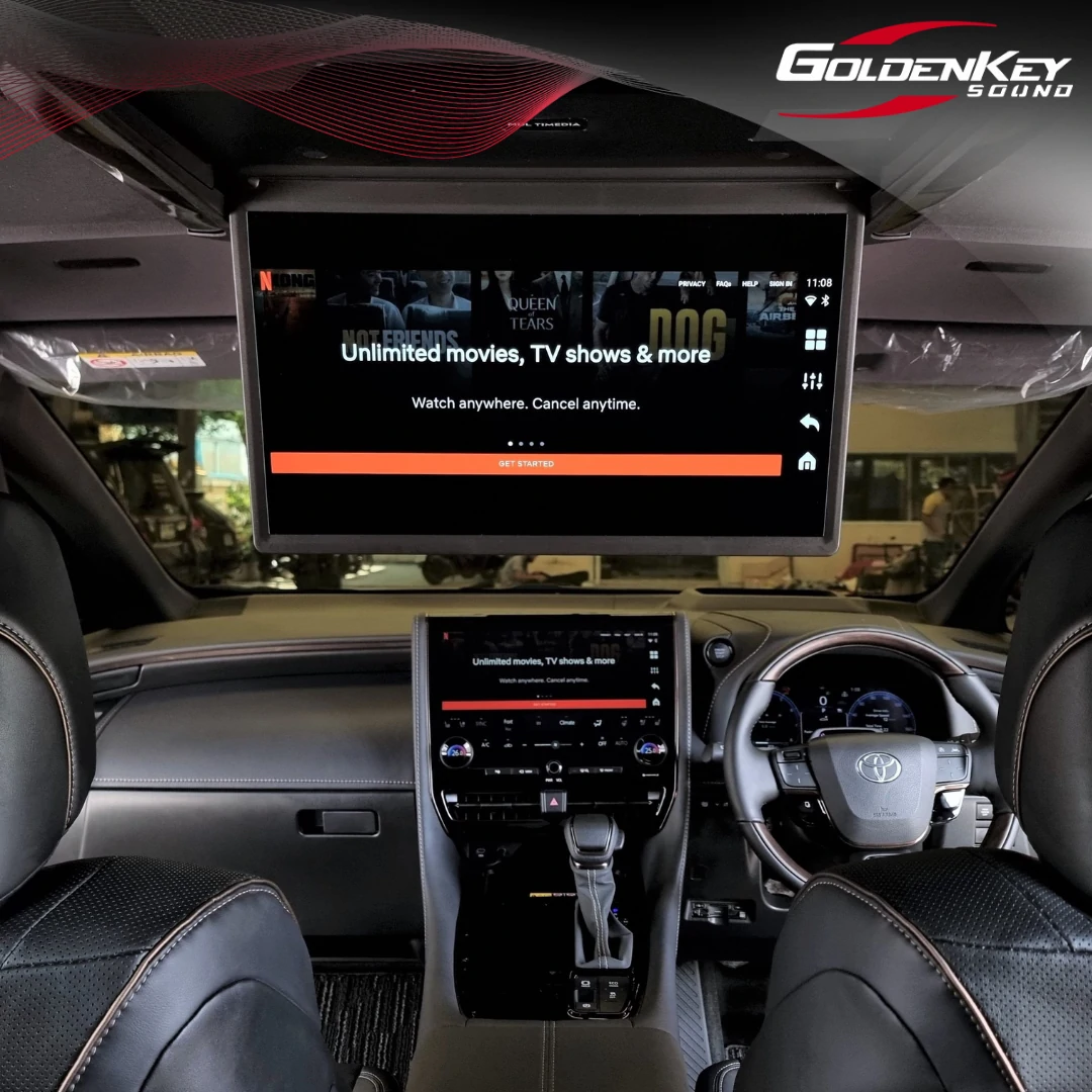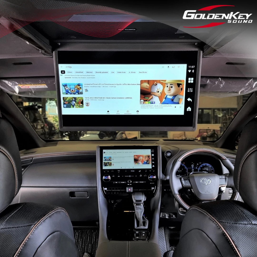 New Alphard 40 คันนี้มีจอหน้ามาเพียงอย่างเดียวแต่ไม่มีจอเพดาน ลูกค้าเข้ามาติดตั้งจอเพดานใหม่ล่าสุด ซึ่งออกแบบมาตรงรุ่นรถโดยเฉพาะ ดูเรียบร้อยสวยงามเหมือนมาจากญี่ปุ่น เป็นระบบเปิดปิด Auto ด้วยไฟฟ้า พร้อมติดตั้งกล่อง Android รุ่น Top ทำให้สามารถเปิดดู YouTube, Netflix, Disney และ App อื่นๆอีกมากมาย โดยทัชสกรีนที่หน้าจอได้เลย