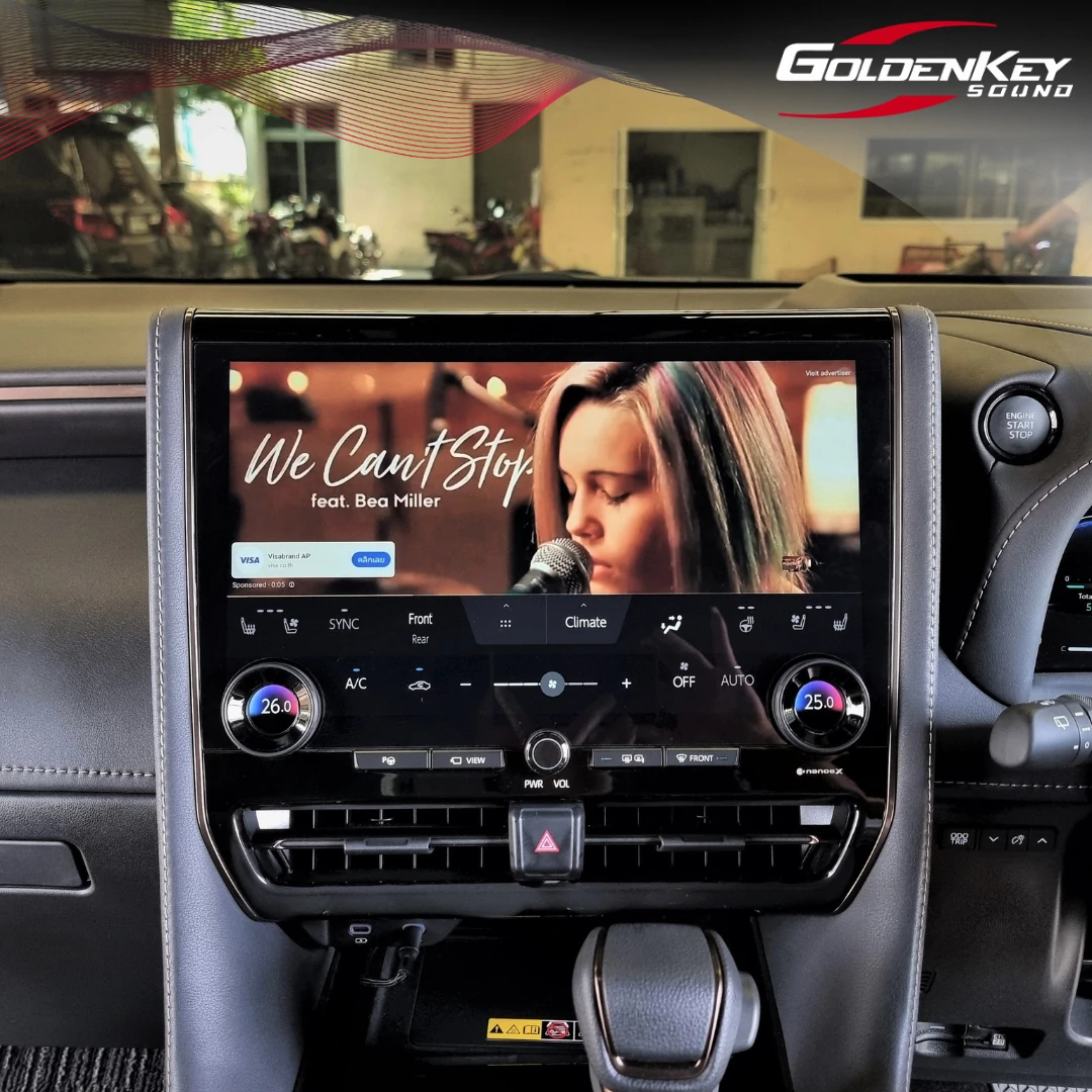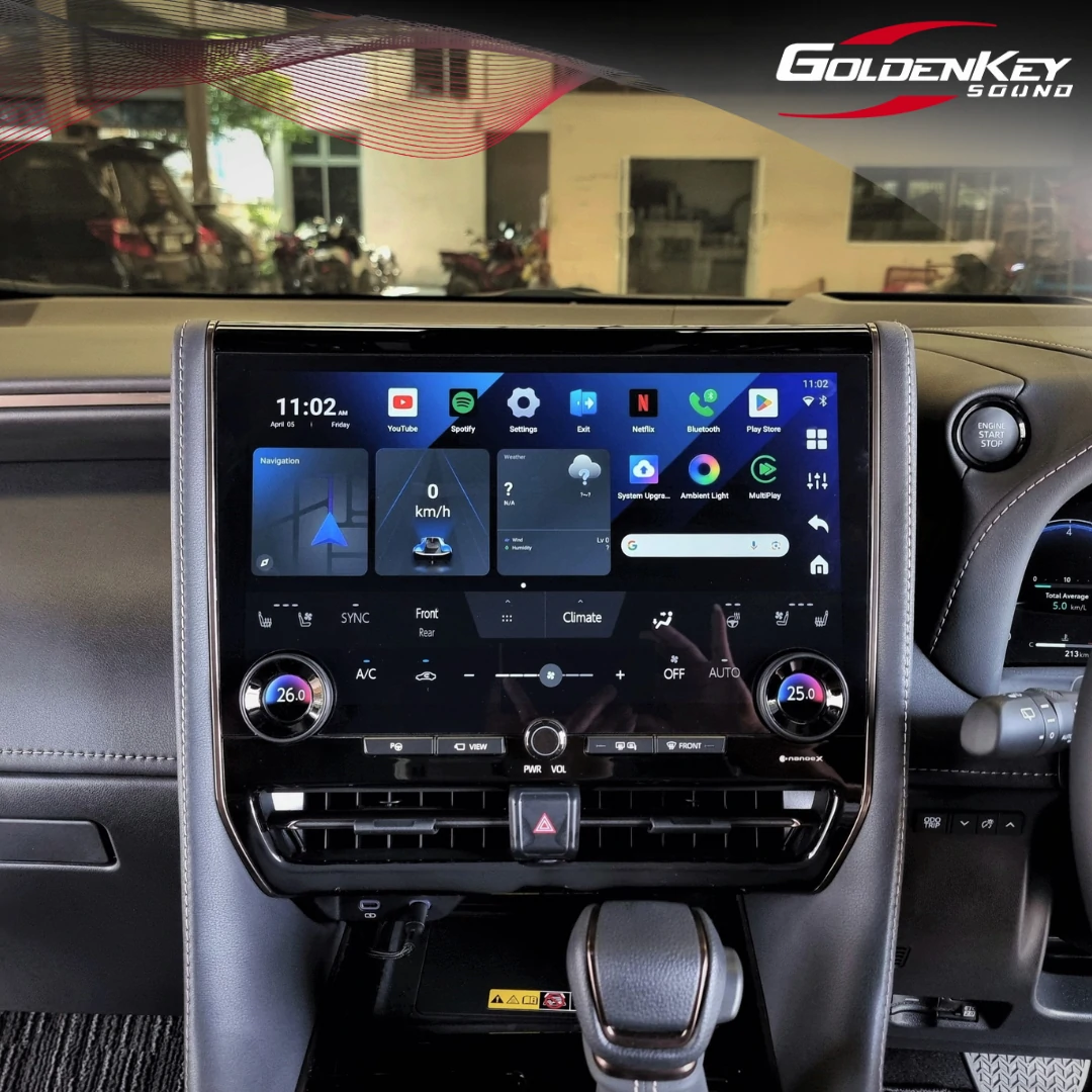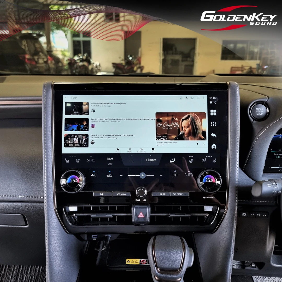 New Alphard 40 คันนี้มีจอหน้ามาเพียงอย่างเดียวแต่ไม่มีจอเพดาน ลูกค้าเข้ามาติดตั้งจอเพดานใหม่ล่าสุด ซึ่งออกแบบมาตรงรุ่นรถโดยเฉพาะ ดูเรียบร้อยสวยงามเหมือนมาจากญี่ปุ่น เป็นระบบเปิดปิด Auto ด้วยไฟฟ้า พร้อมติดตั้งกล่อง Android รุ่น Top ทำให้สามารถเปิดดู YouTube, Netflix, Disney และ App อื่นๆอีกมากมาย โดยทัชสกรีนที่หน้าจอได้เลย