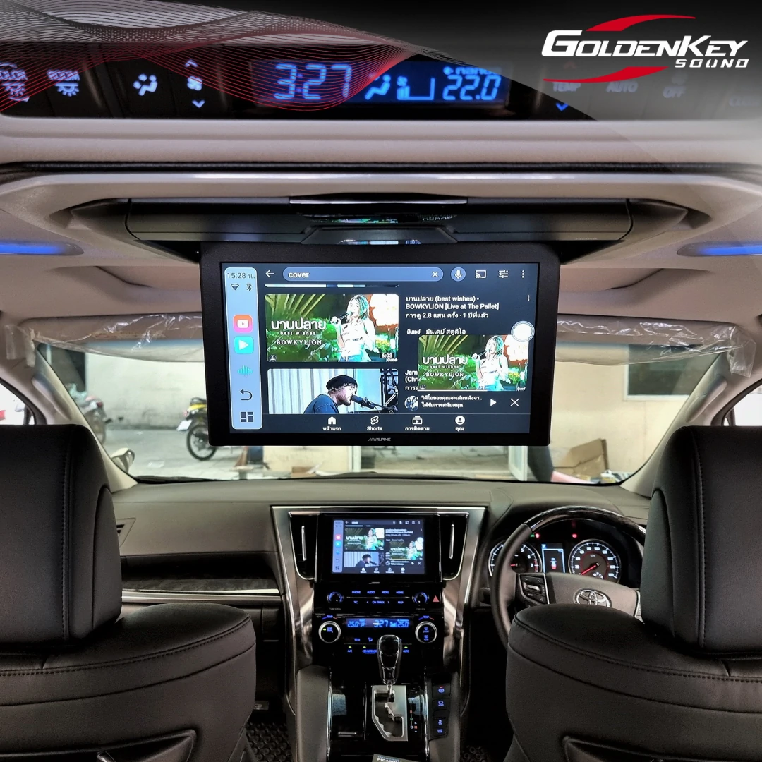 New Alphard-Vellfire ติดตั้งจอเพดาน Alpine 12.8 นิ้ว พร้อมใส่กล่อง Ai Box รุ่น Top ทำให้จอเดิมจากญี่ปุ่นสามารถเปิดดู YouTube Netflix Google Maps และ App อื่นๆได้ โดยทัชสกรีนบนหน้าจอได้เลย ติดตั้งโดยไม่มีการดัดแปลงรถ