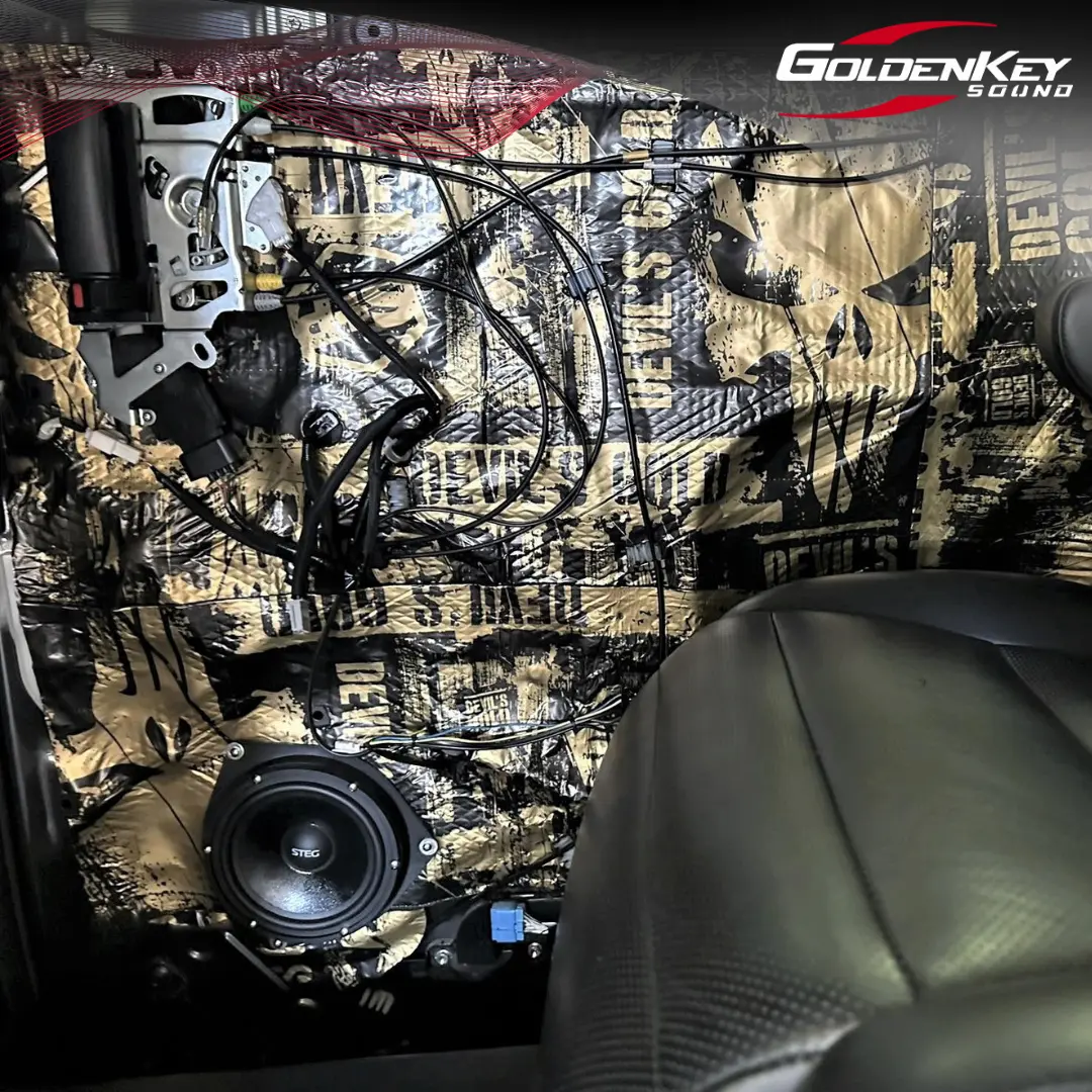 พร้อมอัพเกรดระบบเสียงใหม่ด้วยลำโพง STEG สินค้าคุณภาพสูงจากอิตาลี ลำโพงหน้า-หลังแทนที่ตำแหน่งเดิม ถ่ายทอดรายละเอียดเสียงได้อย่างดี เสริมด้วยแผ่นเก็บเสียง StP Devil Gold รุ่นใหม่ช่วยลดเสียงรบกวนจากภายนอก เก็บเสียงดีขึ้นกว่ารุ่นก่อน