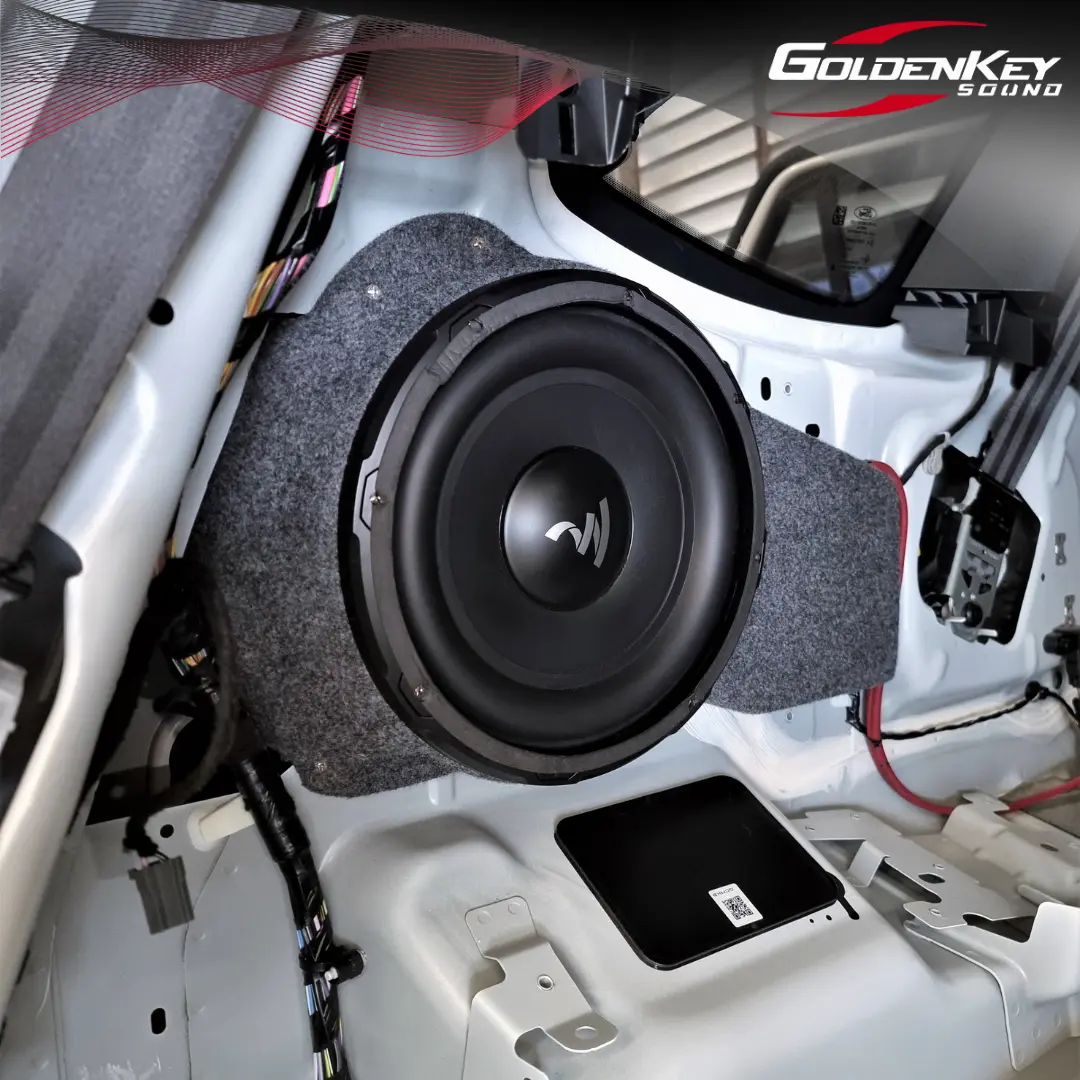 ตู้ Subwoofer เป็นตู้สูตรออกแบบพิเศษ ติดตั้งซ่อนอยู่ท้ายรถ จัดวางตำแหน่งให้ไม่เสียพื้นที่ภายใน งานเนี้ยบเนียนเหมือนออกจากโรงงาน