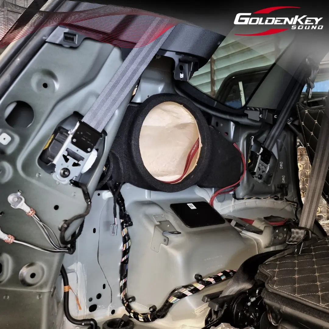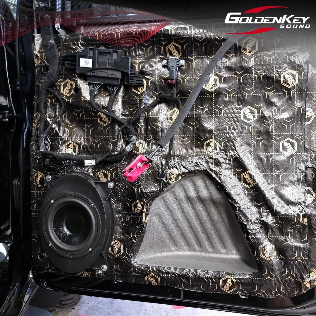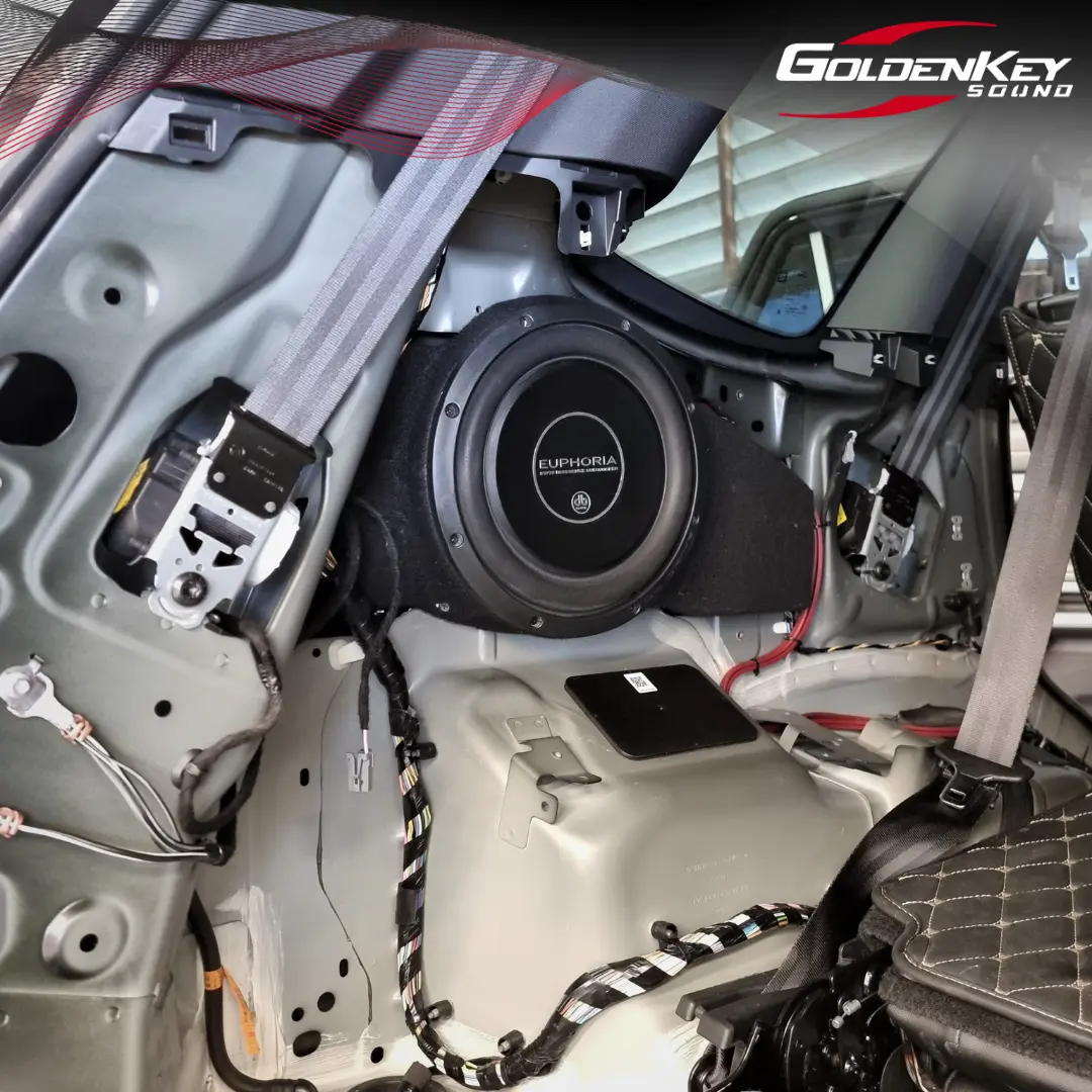 เสริมแผ่นเก็บเสียงทั้ง 4 ประตู และออกแบบตู้ Subwoofer ใหม่ ให้คุณภาพเบสที่นุ่มลึก-หนักแน่นกว่าของเดิม โดยเข้าที่ตำแหน่งท้ายรถ ดูเรียบร้อยสวยงามเหมือนมาจากโรงงาน ไม่เสียพื้นที่ใช้สอยในตัวรถ