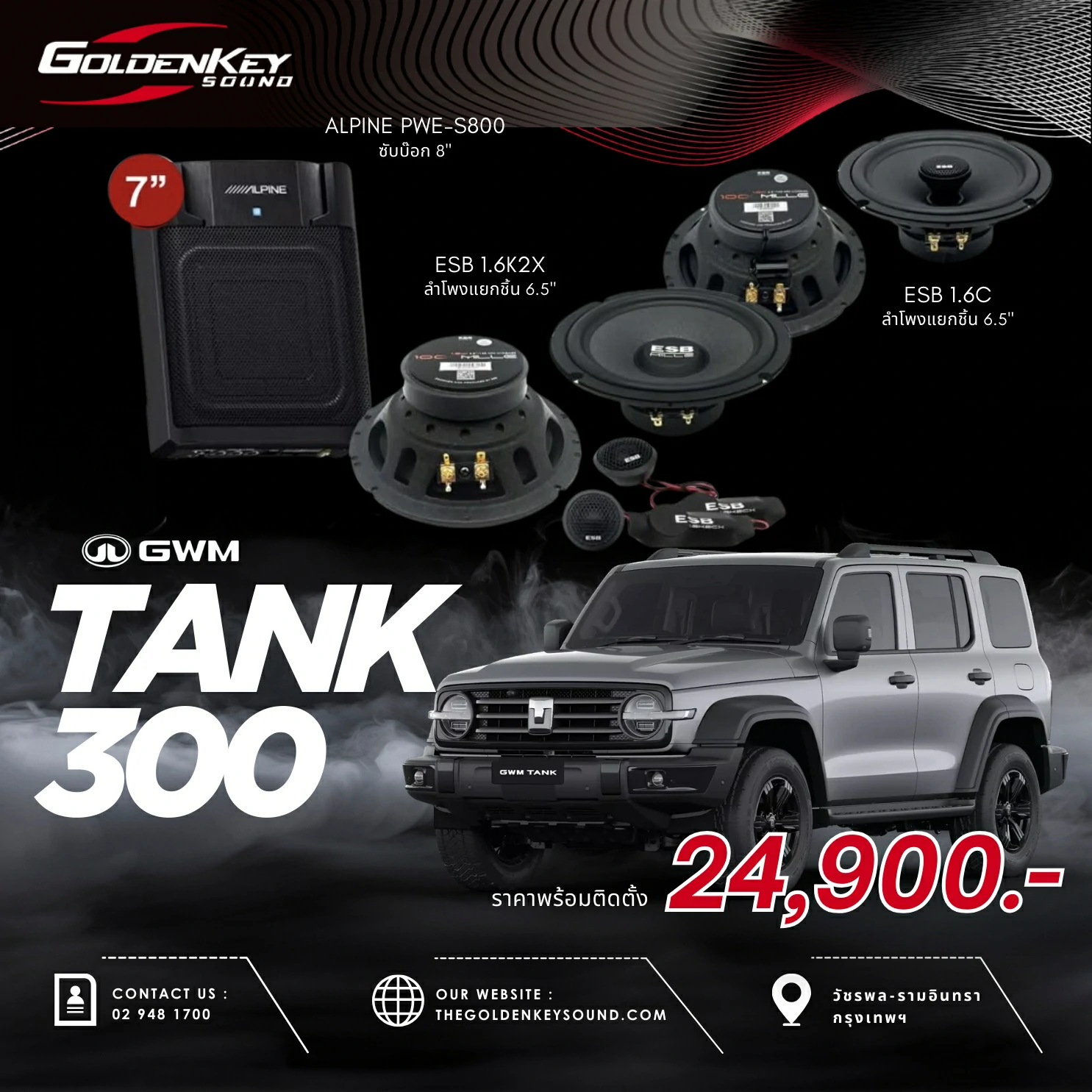 🔊 แพ็กเกจ3 เริ่มต้น 24,900.- ชุดเครื่องเสียงสำหรับ GWM TANK 300 พร้อมติดตั้งครบจบ