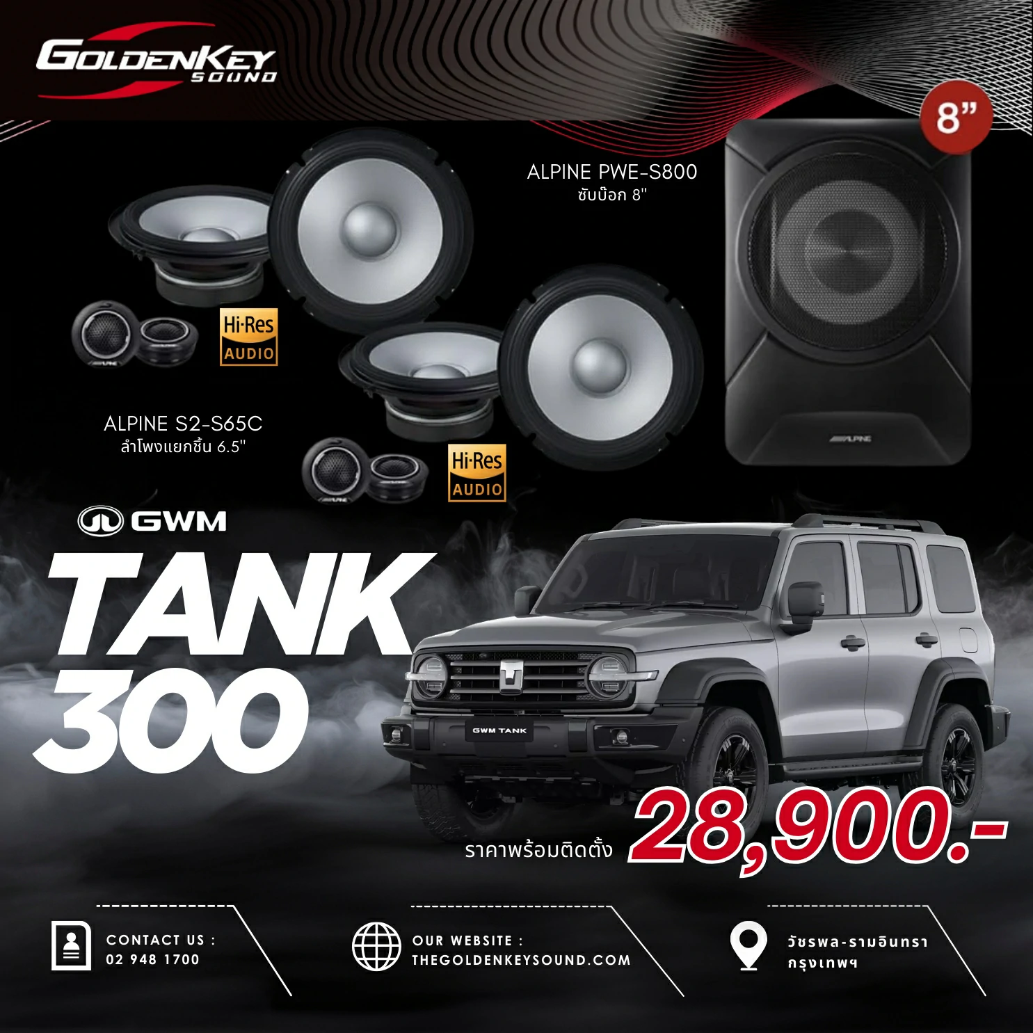 🔊 แพ็กเกจ5 เริ่มต้น 28,900.- ชุดเครื่องเสียงสำหรับ GWM TANK 300 พร้อมติดตั้งครบจบ