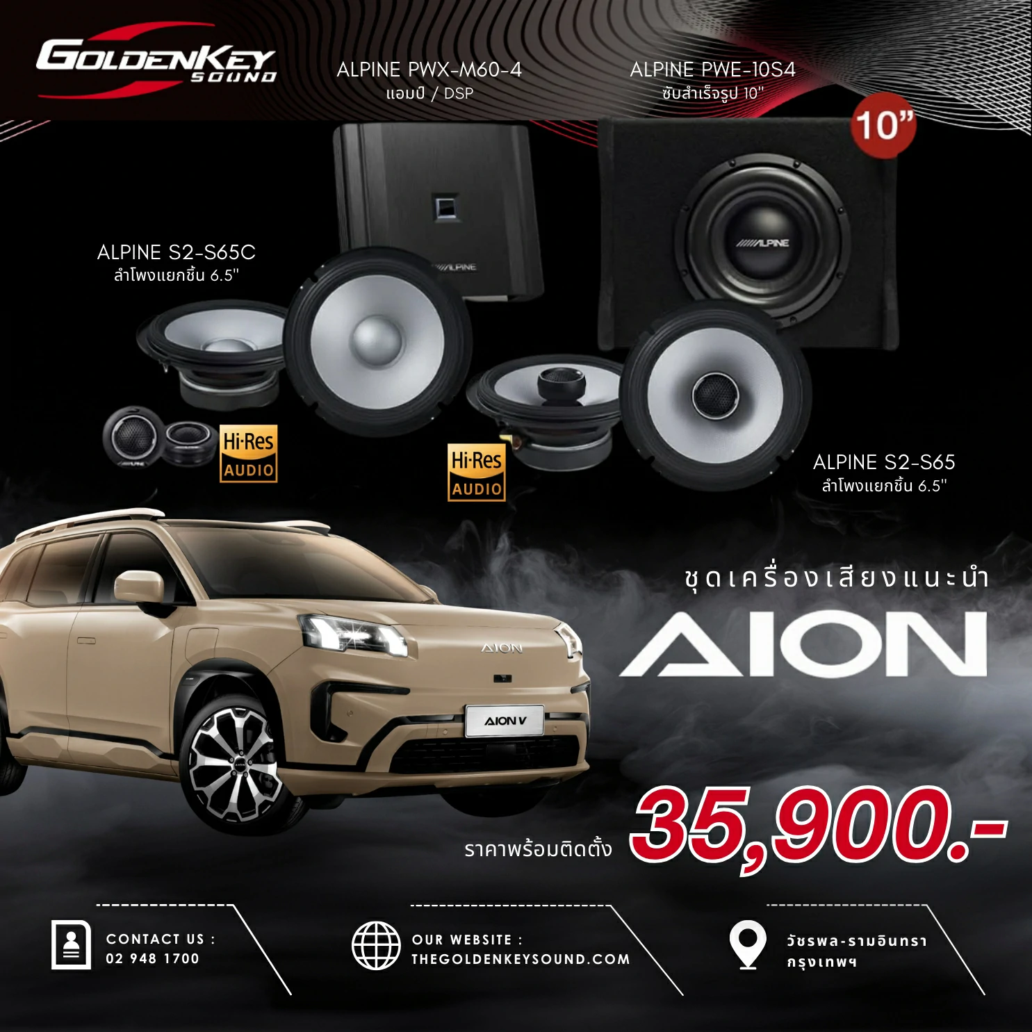 🔊 แพ็กเกจ9 เริ่มต้น 35,900.- ชุดเครื่องเสียงสำหรับ AION พร้อมติดตั้งครบจบ