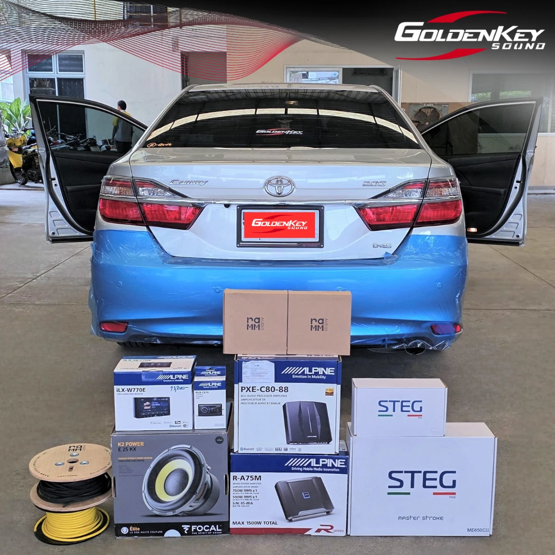Toyota Camry 🚘 ติดตั้งจอ Alpine 7 นิ้ว พร้อมอัพเกรดระบบเสียงด้วยสินค้าคุณภาพสูง Alpine-Steg-Focal ในส่วนงานติดตั้งหล่อเสา A เพื่อปรับทิศทางของเสียง Twitter กับ Midrange , ลำโพง Midbase เข้าตำแหน่งเดิมของรถ ,เพาเวอร์แอมป์ และ Subwoofer 10“ ติดตั้งอยู่ในตู้สูตร ที่ออกแบบใหม่ ของทางร้าน ให้เบสหนักแน่น-นุ่มลึก อยู่ท้ายรถ ไม่เสียพื้นที่ใช้สอย ขอขอบคุณ🙏 K. ลูกค้า มากๆครับ ที่ไว้วางใจทางร้าน Goldenkey Sound ครับ