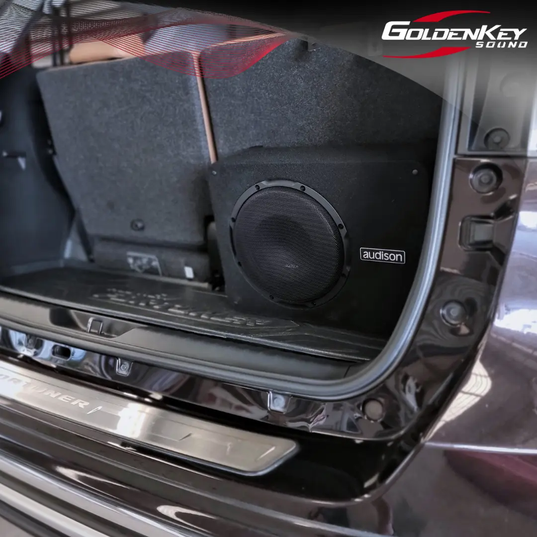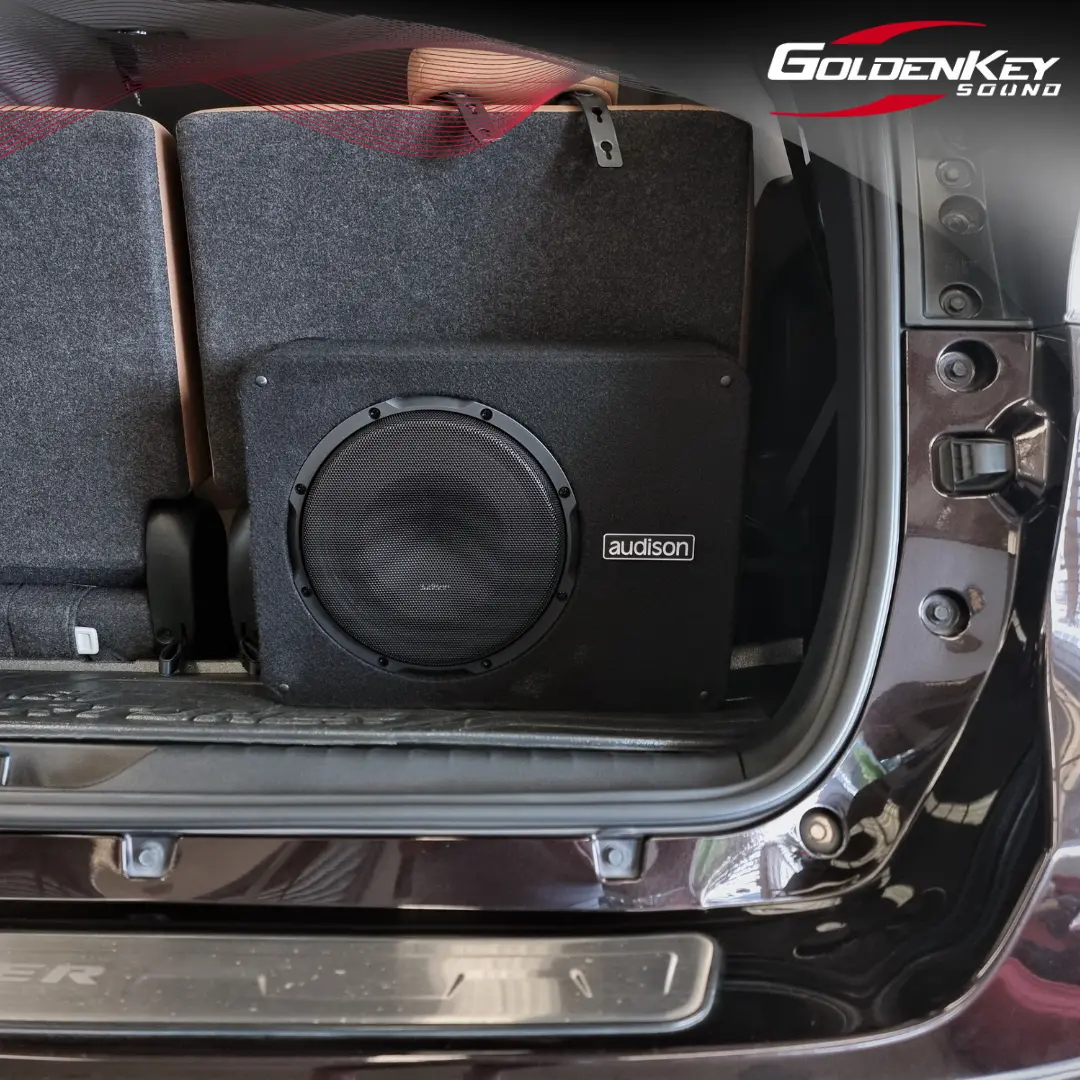 จากเดิมที่ลูกค้าเข้ามาติดตั้งระบบเสียงไปแล้ว เข้ามาเติมมิติเสียงเบสด้วย Subwoofer จาก Audison ให้เบสที่นุ่มลึกหนักแน่น ใช้เวลาไม่นาน ติดตั้งโดยทีมงานมืออาชีพจาก Goldenkey Sound