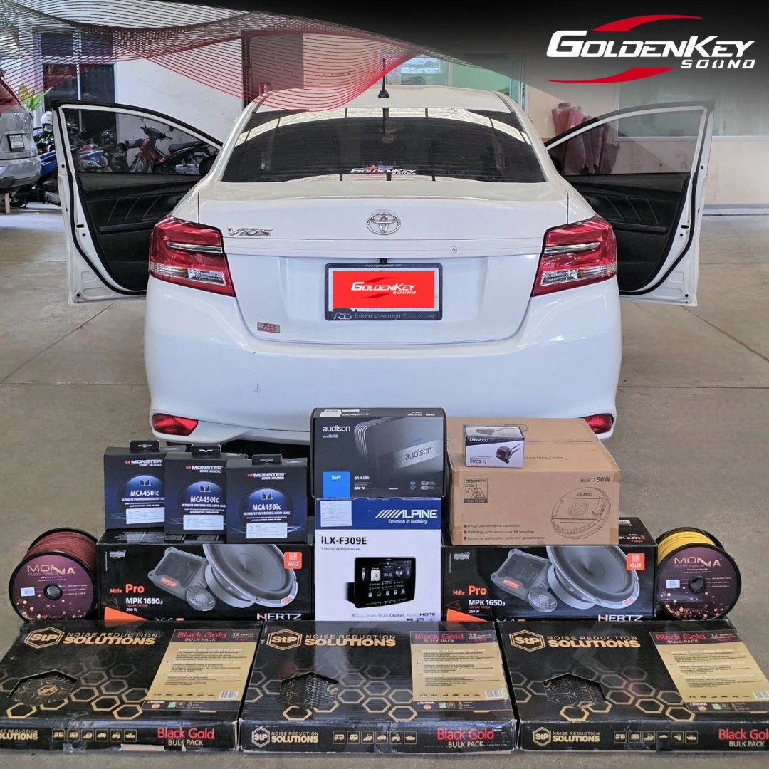 Toyota Vios 🚘 รถเล็กติดชุดใหญ่ ติดตั้งชุดเครื่องเสียงเต็มระบบ Alpine- Audison-Hertz แบรนด์คุณภาพไฮเอนด์ จากประเทศ Italy พร้อม 🔊Subwoofer ในหลุมยางอะไหล่ ให้เบสหนักแน่น-นุ่มลึก เสริมด้วยติดตั้งแผ่นเก็บเสียงทั้งคันของ Stp จากประเทศ Russia 🇷🇺 แท้ 100% ช่วยลดเสียงรบกวนจากภายนอก ทำให้การฟังเพลงเป็นไปอย่างมีความสุข การติดตั้งเน้นความละเอียด และปราณีตทุกจุด ขอขอบคุณ🙏 K.ลูกค้าประจำ มากๆครับ ที่ไว้วางใจทางร้าน Goldenkey Sound ครับ