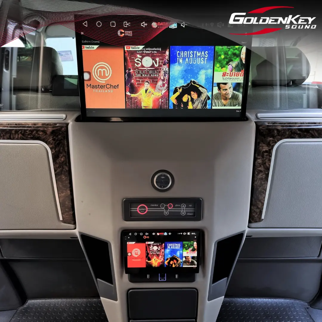 ในส่วนของห้องผู้โดยสารด้านหลัง ติดตั้งจอ Android รุ่น Top แยกการทำงานแบบอิสระจากจอหน้า ควบคุมได้เอง สุดท้ายเพิ่มเพาเวอร์แอมป์ Hertz 🇮🇹 เพื่อให้คุณภาพเสียงดียิ่งขึ้นแทนที่ตัวเก่า